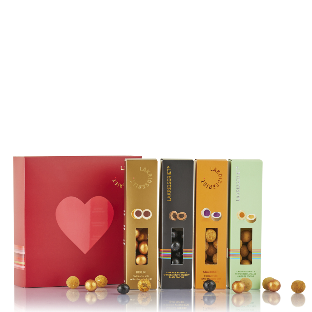 Lakridseriet Gaveæske Med 4 Varianter - Berlin, Rio, Stavanger & Dubai - 440g
