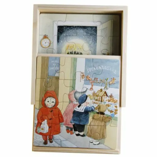 Lilla Kottten 4 Træpuslespil I Trææske - Pigga